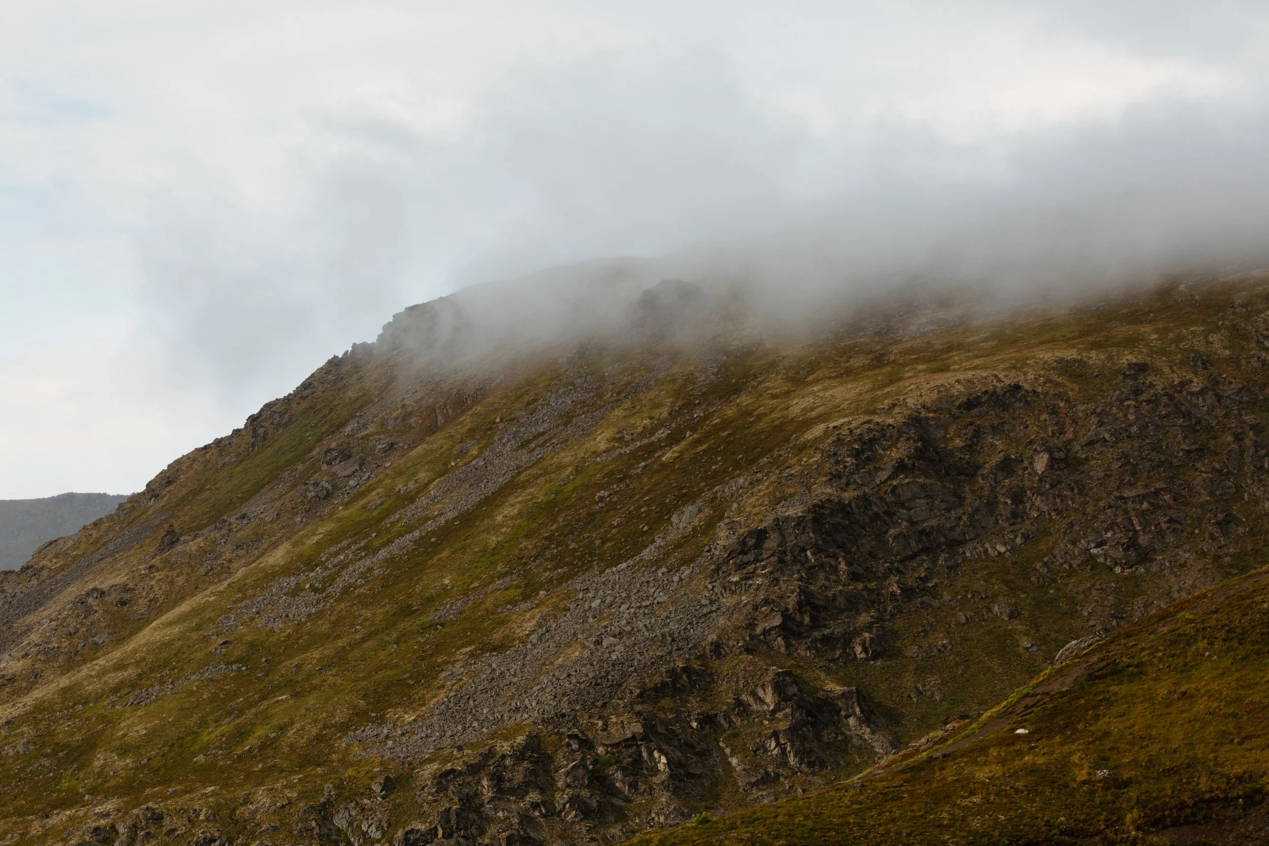 As we journeyed from Meier Lake, I was a little worried about how the weather was looking. It takes about 30 minutes to drive up the mountain to Summit Lake in Hatcher Pass. During the drive and as we got further up the mountain, the weather seemed to transform for us! When we rose above the clouds, the rays of sunlight reflected off the mist and literally illuminated the raindrops like glistening crystals. It was absolutely magical! It was a great lesson for myself and hopefully encouragement to other couples that you don’t know what the weather will be, especially in Alaska, until you physically get to the destination. And most of the time, it’s worth it and it actually more magical than what you thought it would be. If we would’ve been scared off by the rain clouds, we wouldn’t have kept driving and got above them to experience what we did. And a huge bonus, because of the intimidating weather, we were the only ones up there!